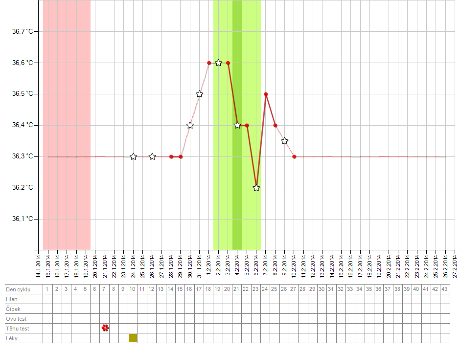 10.2.2014 18:54no, vzhledem k tomu, že máš vynechaný některý měření (a ne málo), tak se nedá vyčíst skoro nic. je třeba měřit opravdu pravidelně a denně a dá se říct od začátku ms cyklu (resp.od skončení krvácení).