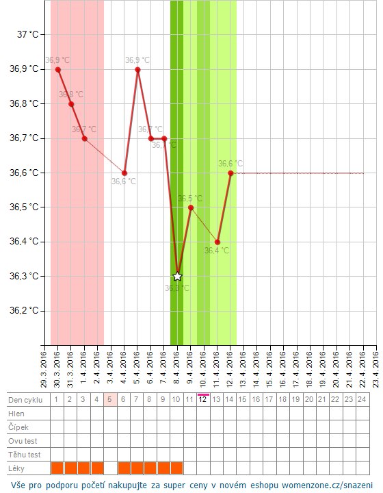 12.4.2016 11:13Meranie BT je presne pokial pouzivas stale ten isty teplomer ten isty cas a v tych istých podmienkach...pokial si spala niekde vonku, kde boli 2 stupne, ale inde, tak teplotu ber naozaj velmi orientacne, lebo je to velmi ovplyvnitelne. ja by som povedal, ze ovulka bola 8.4. teda 10dc, ale treba merat dalej. Oznac si teplotu, ktora mohla byt ovplyvnena (napr. spanim na horach).