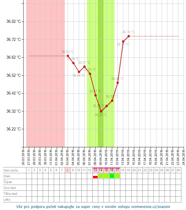 14.4.2019 22:32Podle grafu bych řekla, že ovulace proběhla. Jak už tu bylo psáno, může to být kvůli cystě, ale těch možností je víc. Taky to může být křehkým čípkem, který se dá poranit i právě tím vibrátorem nebo prsty, pokud se teď víc zkoumáš. Může jít i o zánět, infekci, hormonální problém. Kdyby to pokračovalo, nebude na škodu poradit se s gynekologem.