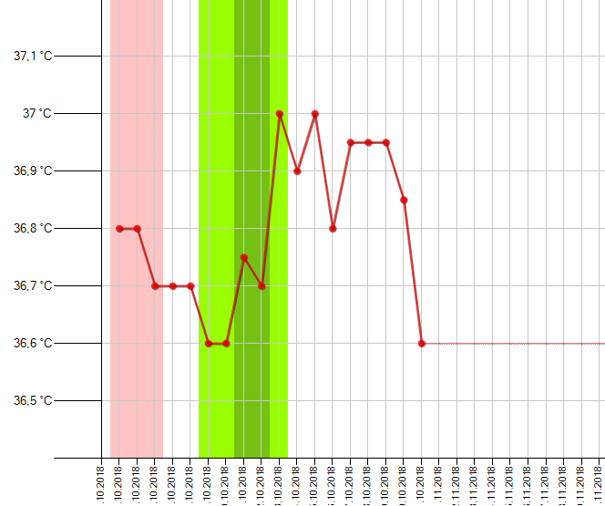 Ahoj, co si myslíte o grafu? Většinou mám LF 13dní, druhý den slabé špinění na čípku a pobolívání podbřišku, dnes velký propad v bt.. :/