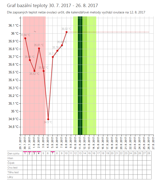 Ahoj holky, vedu si první graf a teď netuším, co znamená ta rovná vodorovná červená čára, která se objevila u poslední naměřené teploty (8.8., 36,02°C)