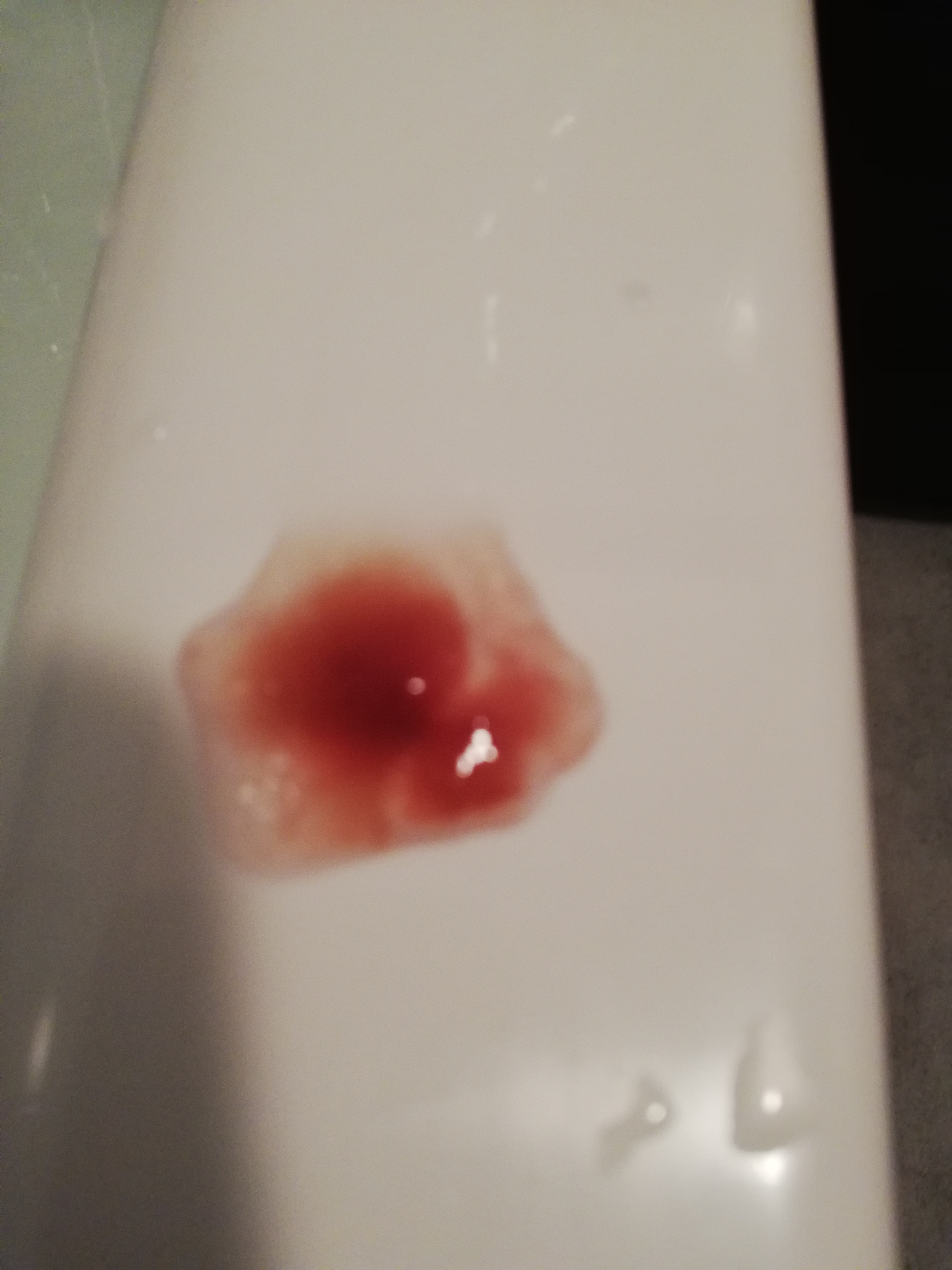 Dobrý večer, předem se omlouvám za fotku. Ale vzhledem k tomu že mě to vyděsilo musím pro řadu. Byla jsem na WC a otrela jsem toto.. Vypadá to jak hlen a sliz ale uvnitř je to takhle červené a okolo je to průhledné. Nevím je to jak hlen a sliz. Prosím o radu.