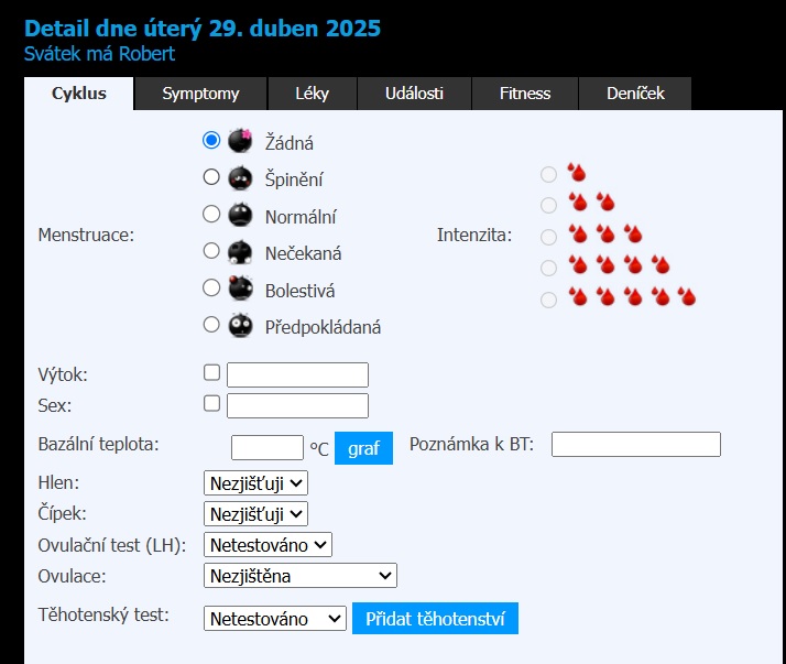 Začala jsem si psát i špinění, někdy před MS špiním i 3 dny, ale nepropíše se to v tabulce a v Nastavení jsem nenašla.. vidím jen když zadávám menstruaci.. děkuji pokud víte jak na to..