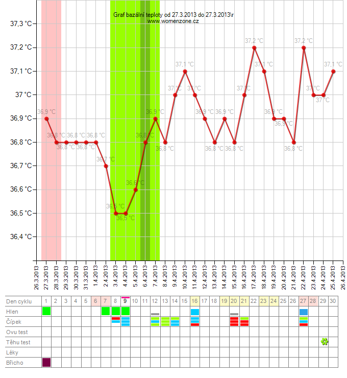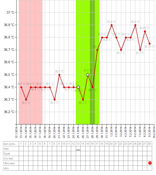 tohle taky není úplně ukázkový graf - teplota "haprovala", jak říká smurfka, ještě víc a skončilo to krásným miminkem