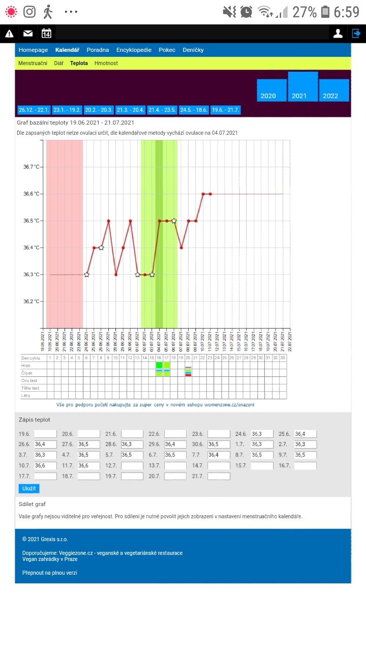 Dnes 23 den cyklu a tyto teploty.Kdy myslite,ze probehla ovulace?