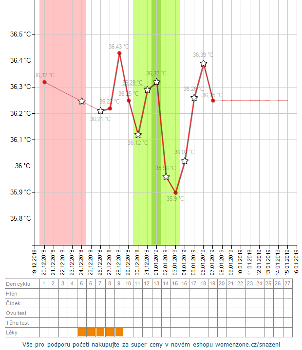 7.1.2019 12:50Doporucila bych merit na jedno desetinne misto. Graf pak bude lepe citelny. Jinak si myslim, ze ovulaci jeste nelze urcit.