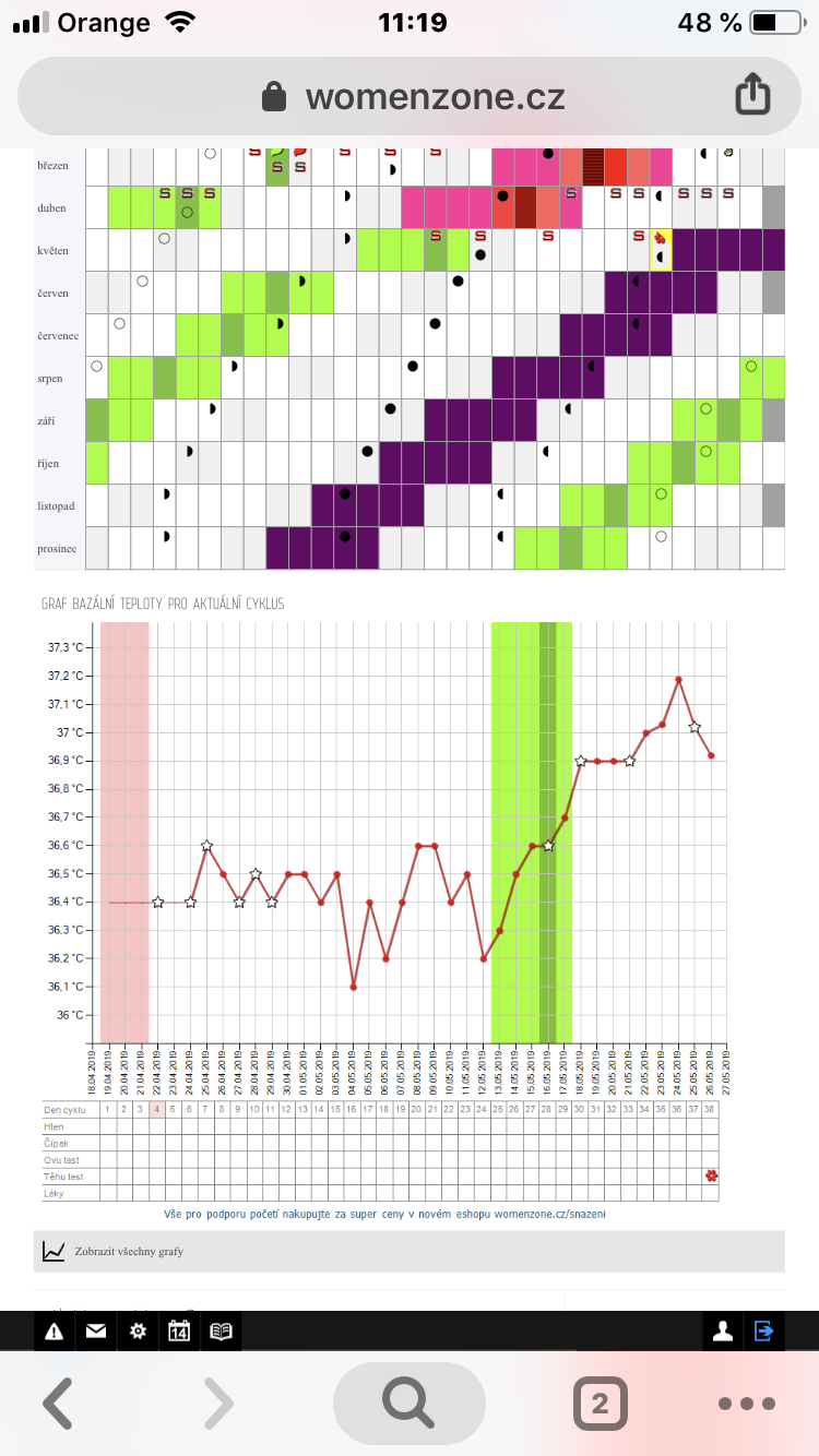 26.5.2019 12:30Myslim, že spíš přijde MS. Ale ještě ztraceno asi nic není. Já při těhotenství měla 10 DPO slaboulinkou čárku. Ale je možný,že se ti třeba zahnízďuje delší dobu. Zkus udělat TT za dva dny