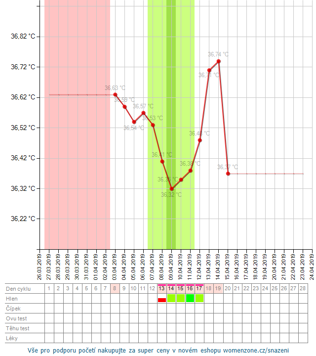 Takto se vyvinula bazální teplota do dneška , výrazný pokles. Kdy proběhla ovulace, kdy se dostaví MS a jaká bude?