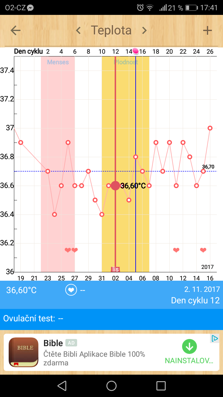 16.11.2017 17:49Podle grafu sex nebyl v obdobi ovulace, takze bych rekla, ze tehotenstvi nehrozi, obzvlast kdyz se chranite.