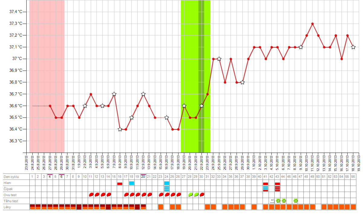 Pro upřesnění - nejvyšší teplota je z dneška (37,1) a nejnižší 40DC, kdy jsem měla pozitivní ovu test - 36,3:)