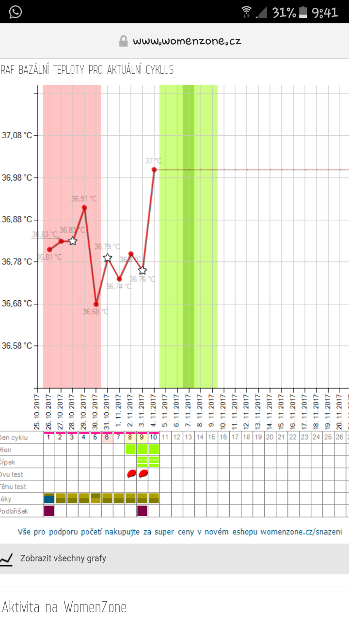 Je mozne ze pri mereni bazalni teploty v pretopene mistnosti(24C) muze byt az o 0,3C vice BT, normalne jsem merila pri 21C.Ovu testy jsem mela dva dny negativni
